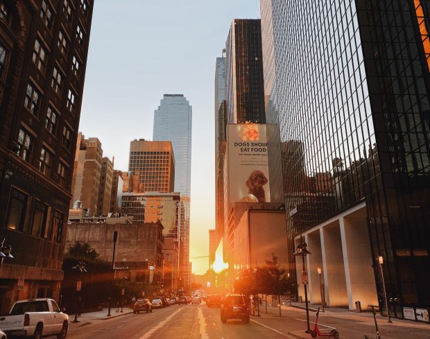 - Camina por las tres calles más especiales del Downtwon: Commerce, Main y Elm st. Hay varios restaurantes y edificios espectaculares. También puedes buscar desde abajo los picos más altos de Dallas, el ganador en altura es el Bank Of America Plaza con 281 metros. También puedes ir al atardecer y ver cómo el sol se va poniendo e iluminando los cristales de los edificios de las calles anteriores dejando una luz preciosa.