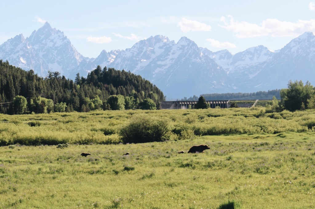 Si Yellowstone se presentaba con paisajes de otro planeta, Gran Teton te ofrece estampas de postal. A lo largo de todo el parque te acompañan las montañas más perfectas que han visto mis ojos. Aquí vimos dos familias de osos grizzlies, ¡una de las mejores experiencias del viaje!