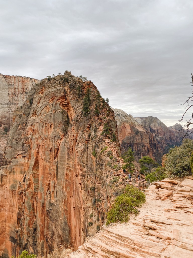 - Para hacer la ruta de Angel’s Landing, es bueno ir cuando haya temperaturas suaves o incluso frías. Nosotros lo visitamos durante las vacaciones de Thanks Giving, en noviembre, y fue un buen momento. Puede que de septiembre a noviembre y de marzo a junio sean los mejores momento para realizar este hike. Ten en cuenta que la subida es empinada, tiene pocas sombras y realizarla con el calor de Utah puede ser agotador. También debes pensar que con lluvia o nieve el terreno puede resbalar y el sendero final puede ser bastante peligroso.