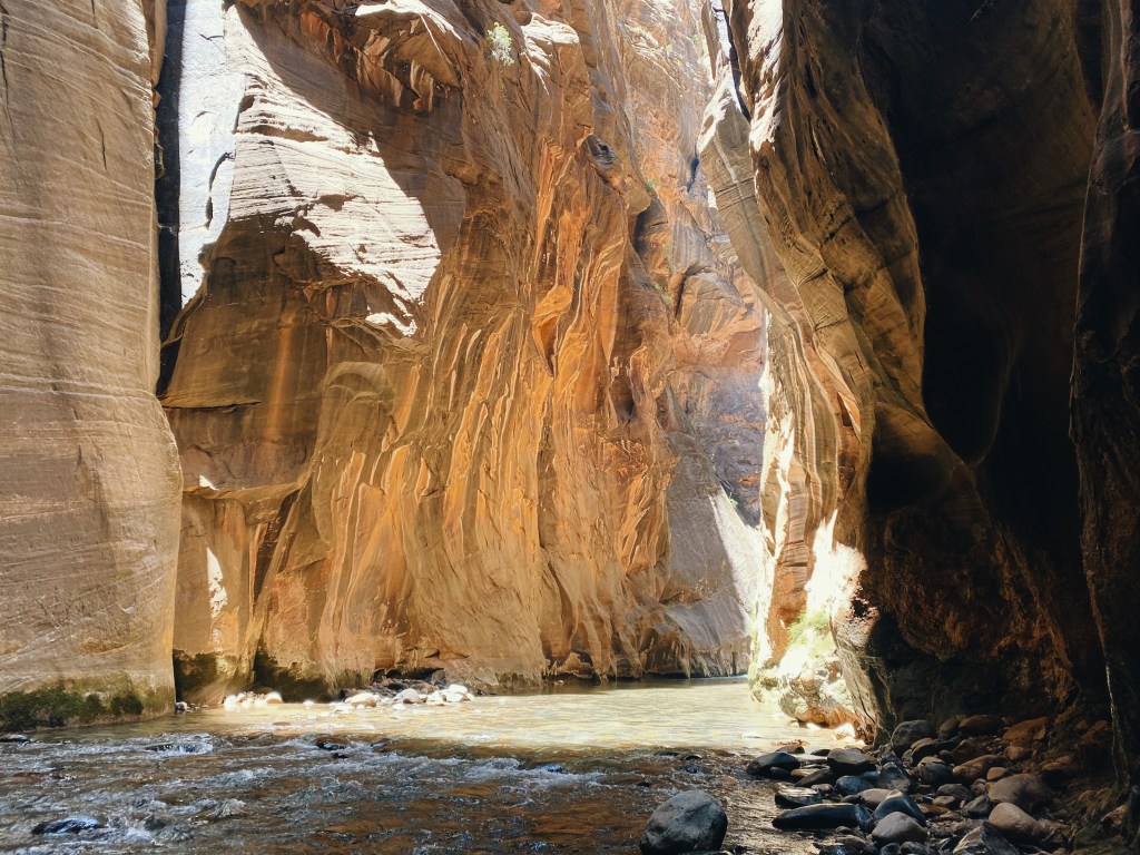 Pese a que se trata de un hike de dificultad moderada, no puedo no recomendarte hacerla. Merece la pena sufrir un poco para ver las maravillas que ofrecen los estrechos del río Virgen. El terreno es completamente irregular, caminarás por encima de rocas pequeñas y resbaladizas y, como te imaginas, sobre el agua. Muchos de los tramos hay que hacerlos en contra de la corriente e incluso nadando. ¿Es o no una gran aventura?