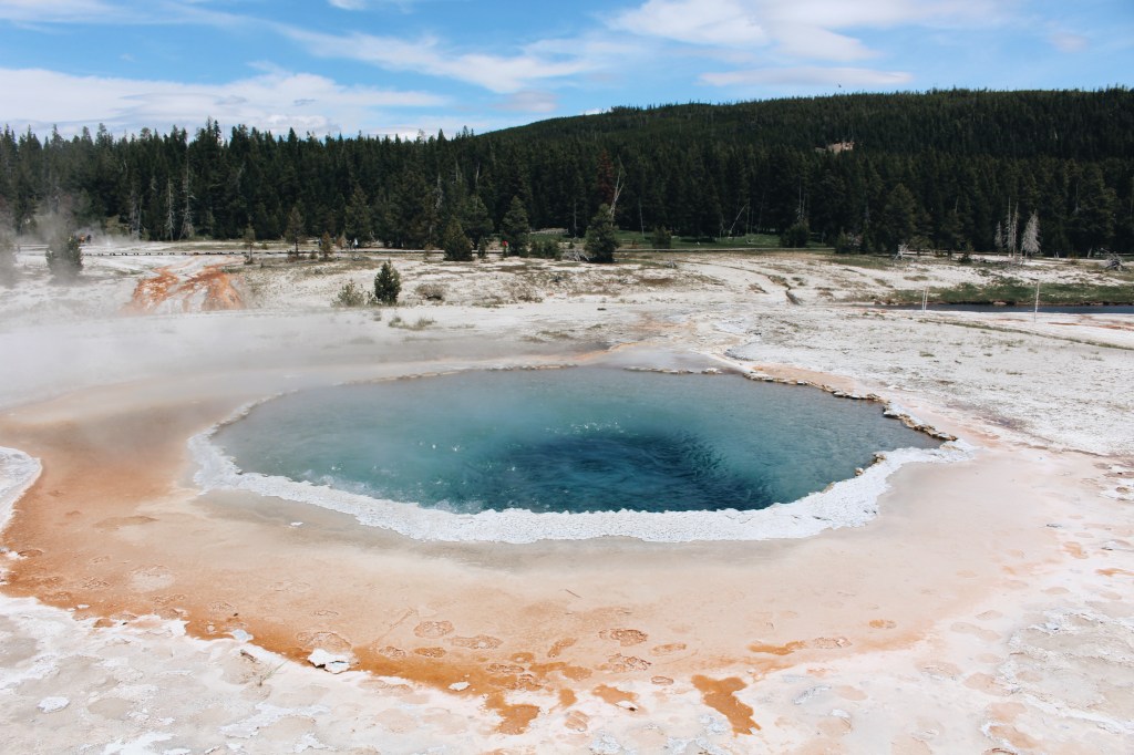 En esta zona llena de geyser y AHOT SPRINGS se encuentran algunos de los puntos más importantes del parque. Empezando por el Old Faithfull Geyser, que miede aproximadamente entre 55 y 75 metros de altura, pasando por el Castle Geyser, que erupciona cada 12 horas y llegando hasta Morning Glory Pool. Mi recomendación es que hagas la ruta entera para no perderte nada. Nosotros no llegamos a terminarla (no sé por qué) y no conocimos Morning Glory Pool, uno de los más bonitos de todo Yellowstone.