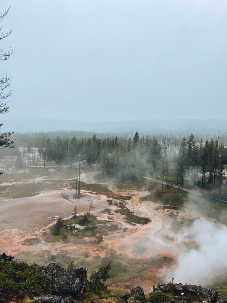 Este conjunto de hot springs con vistas al lago de Yellowstone fue una de nuestras primeras visitas. Aquí se encuentra la laguna que más me gustó de Yellowstone: Black Pool.