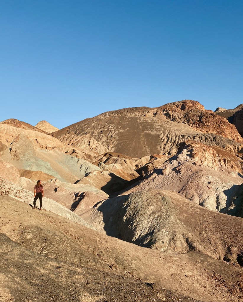 Puedes seguir tu ruta hacia Artist’s Drive junto y Artist’s Palette. Pasarás por un camino con el coche bastante bonito, por varios miradores con vistas y llegarás al Artist’s Palette, lo que se supone que es un acumulación de colores pastel creados por los minerales de las rocas. La realidad de este lugar es que no es como lo enseñan en las redes sociales. Instagram tiene una infinidad de fotos de este punto con los colores excesivamente saturados. Así que ojo, no tengas muy altas las expectativas.