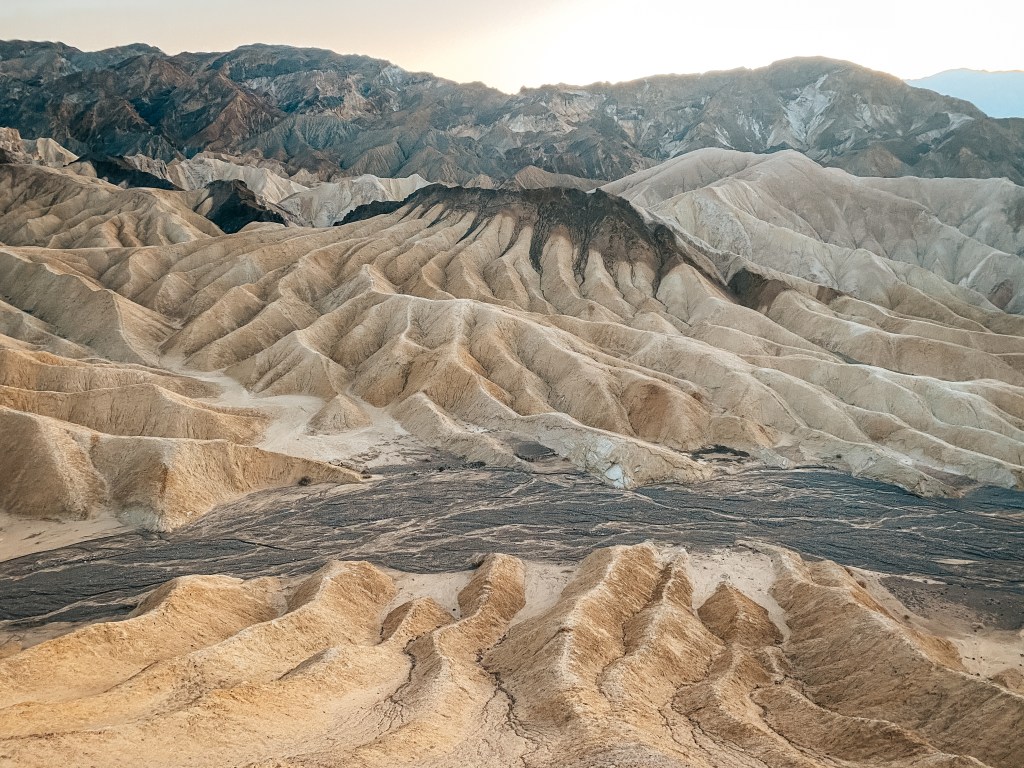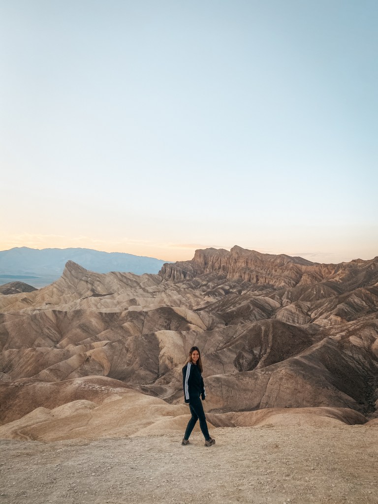 Como postre, dejamos lo mejor para el final. Una de las mejores cosas que puedes hacer es ver el atardecer en el que es, para mí, el mirador más bonito del parque: Zabriskie Point. Se trata de un view point donde una se siente muy pequeña viendo cómo le rodean tales formas y colores. ¡Las fotos hablan por sí solas!