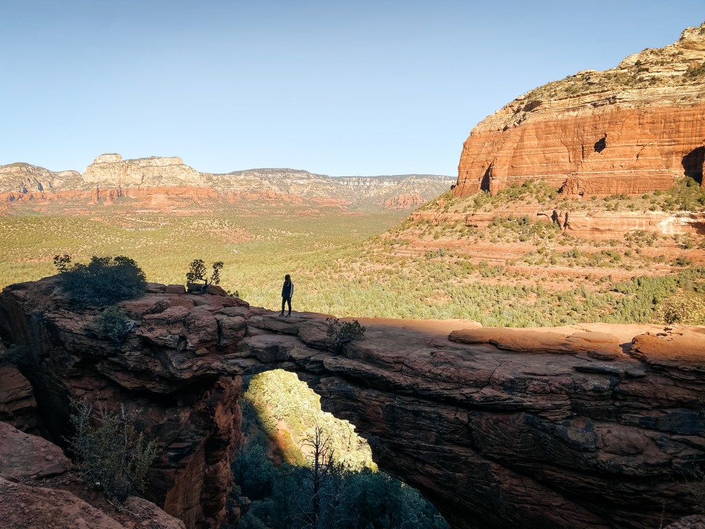 Conconino National Forest tiene muchas rutas que ofrecer. Nosotros seleccionamos una bastante sencillita que aparece continuamente en Pinterest: Devil’s bridge. Una ascensión hacia un arco natural de piedra de grandes dimensiones. Fue un paseo bastante bonito con vistas a las montañas rojizas de Sedona y al verde de los bosques que rellenan el paisaje de esa parte de Arizona. Sin duda alguna, un parque al que volveremos para seguir descubriendo sus recovecos más bonitos.