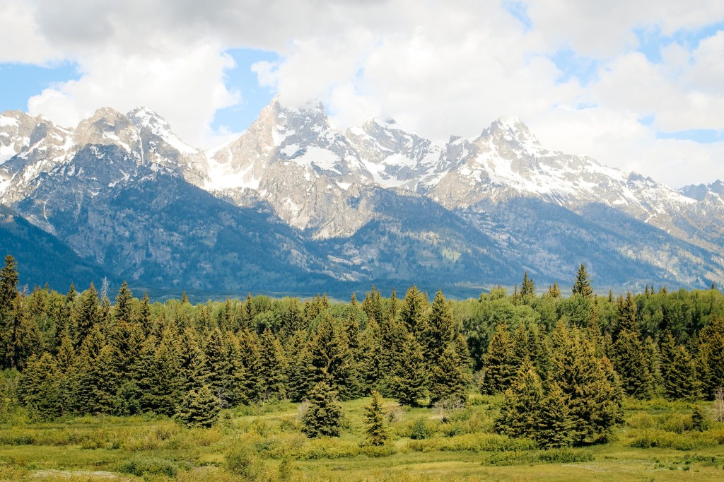 Es inevitable. Las montañas enormes del Grand Teton están presentes en todos los rincones del parque. Tanto es así que siempre es buena idea parar a observarlas, admirarlas y sentir su energía. Menuda joya visual la que rodea al parque. Sus montañas son tan luminosas que en los días claros pordrás hasta contar sus picos nevados. Arropadas por un espléndido cielo azul con algunas nubes, pueden darte la mejor de las bienvenidas al poner un pie en el parque.