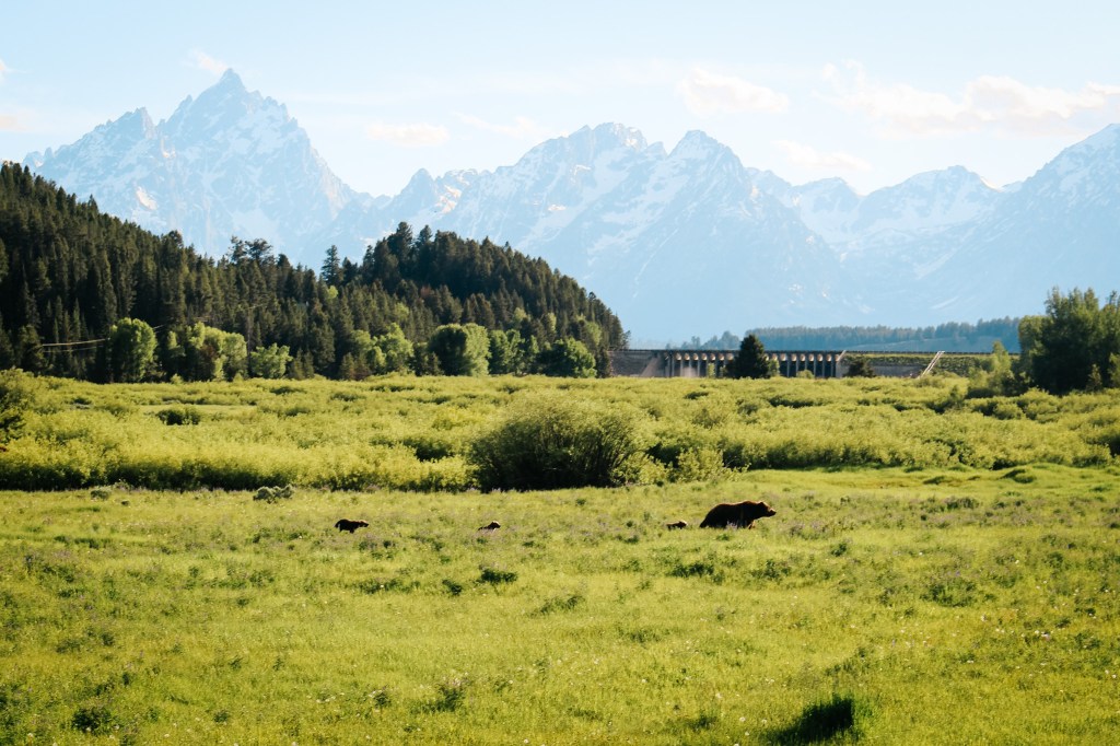 Como no puede ser de otra manera, el momento más bonito de mi visita en Grand Teton fue encontrar a una mamá oso con sus cuatros oseznos. La estampa fue preciosa, la imagen habla por si sola. Por si ni fuera poco, los 5 ositos decidieron cruzar la carretera, pudimos verles perfectamente, ¡qué cosa más bonita!