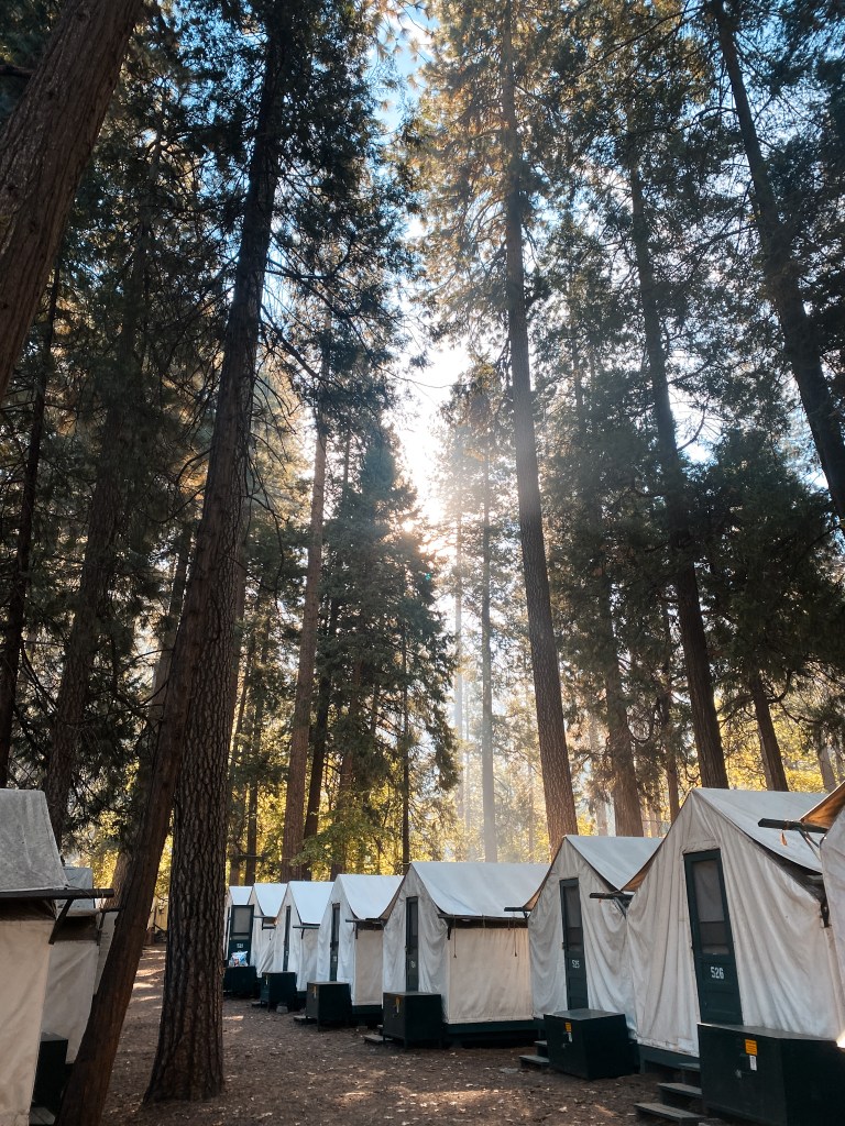 La segunda vez que fuimos, alquilamos una de las cabañas de Curry Village, en pleno valle. Es un pequeño puebito turístico pero con cierto encanto, donde tienes varios tipos de acomodaciones que varían en función del precio. Para que os hagáis una idea, una cabaña para dos personas, sin baño y sin calefacción, ¡cuesta alrededor de 160$!. En cualquier caso, la comodidad de estar dentro del parque para comenzar la ruta caminado desde ahí y poder tomarte una cerveza bien fresquita al anochecer, es un must. Además de un par de restaurantes con menús bastante modestos y a la vez caros, hay una sala con chimenea donde calentarse y estar tranquilamente descansando y jugando a algún juego de mesa.