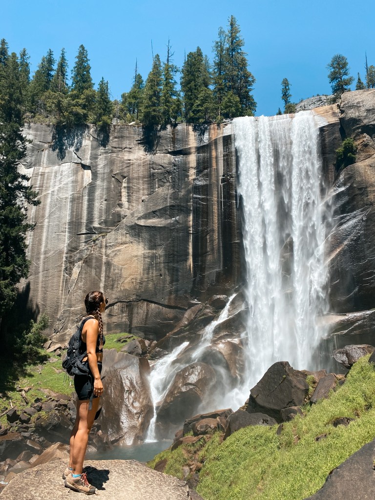 Os voy a hablar de estas dos cascadas a la vez porque ambas están conectadas por una ruta. Para mí son de las más bonitas del parque y además tienen agua durante todo el año. Para conocerlas tienes que hacer una ruta llamada Mist Trail, que te lleva primero a Vernal Falls, y a continuación a Nevada Falls.