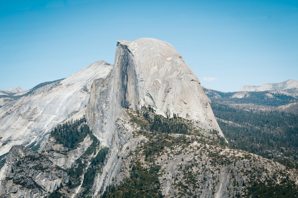 Half Dome es la preciosa montaña con forma de delfin que tuvimos la suerte de conquistar en nuestro último viaje a Yosemite. La «Media Cúpula» que le hace la competencia a El Capitán, es, para mi gusto, el personaje principal del parque. Quizás es por haber interactuado con ella (como os contaré en el apartado de hiking) y porque es la más bonita al atardecer, siempre la última en apagarse.